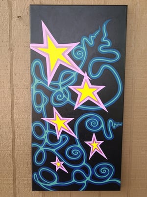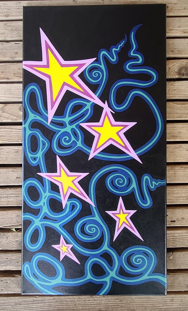 Acrylic Painting done on black canvas with Golden and Liquitex brand professional paints This one is inspired by the Milkey Way Galaxy. Love looking at the stars at night but it is questionable how often I am able to do it. Wish I could spend all day out in nature if I could actually. It is so peaceful. Was thinking a bit how we are all connected in a way when I did this painting and was drawing those stars. Suppose I was thinking the stars were kind of like spirits. Something we all are basically. Anyway, this is done on a shallow canvas that is about 1/2 inch deep and the dimensions are 12in by 24in or 30cm by 61cm. Enjoy! Domestic Priority Shipping included in Price.
